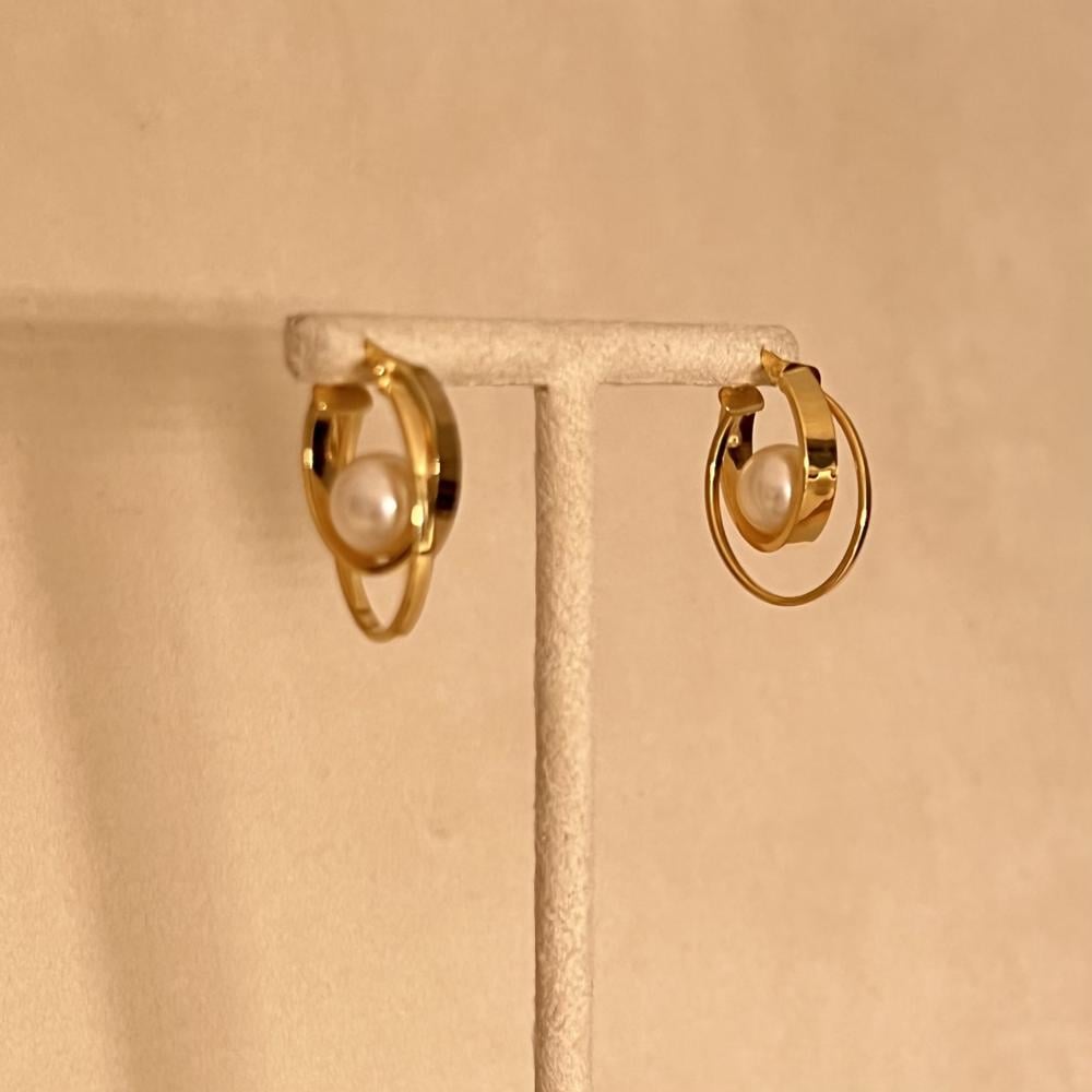 حلق ذهب بحجر كريم(White mother of pearl)(0.5قرام)عيار18–4228