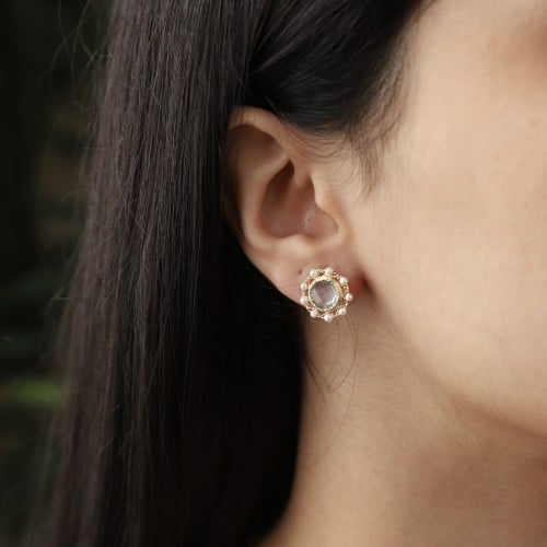حلق ذهب بحجر كريم(Blue topaz)عيار18–4235