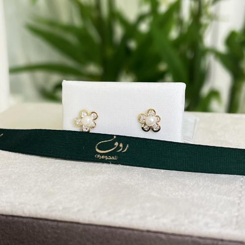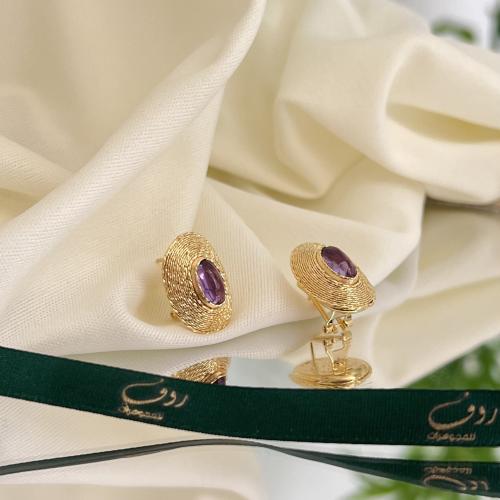 حلق ذهب بحجر كريم(smoky)(0.40قرام)عيار18–3890