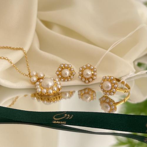 نص طقم ذهب مع لولو زراعي مضمون ومخصوم من وزن الذهب(3.2قرام)عيار21-3955