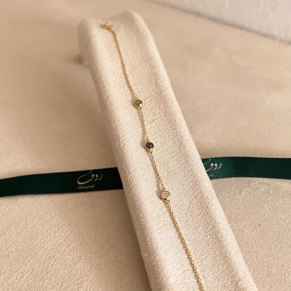 عقد ذهب بحجر كريم(,Citrine,Red tourmaline,Milky sea water,Amethyst)(2.25 قرام)عيار18–4452