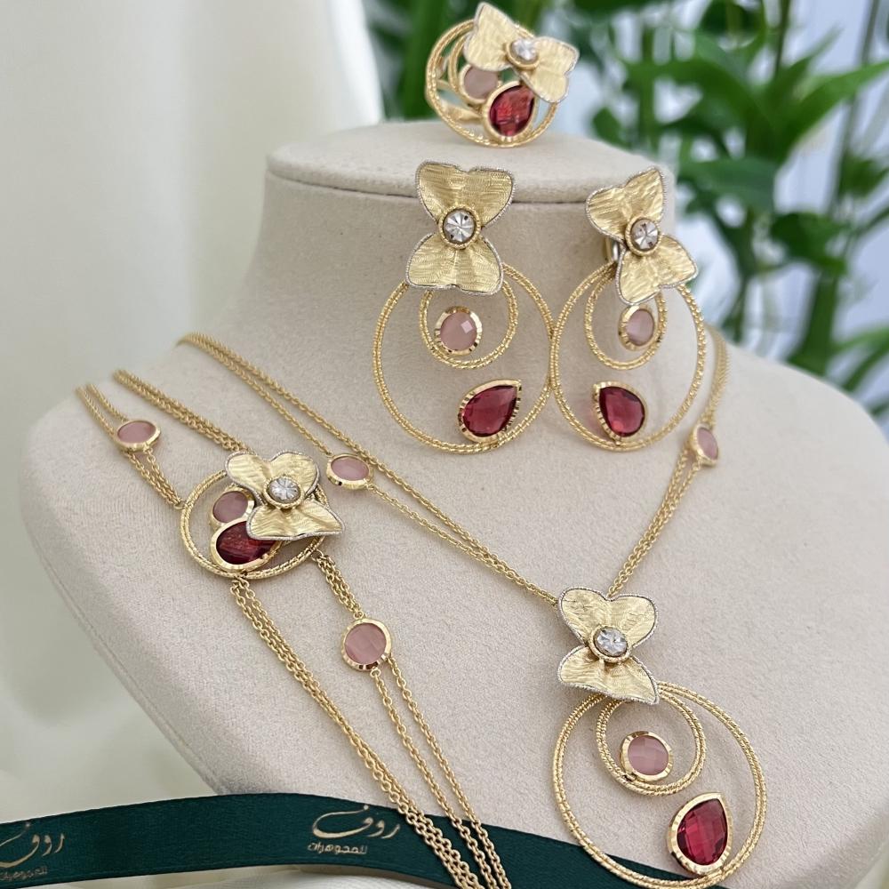 نص طقم ذهب بحجر الأوبال عيار18–4456