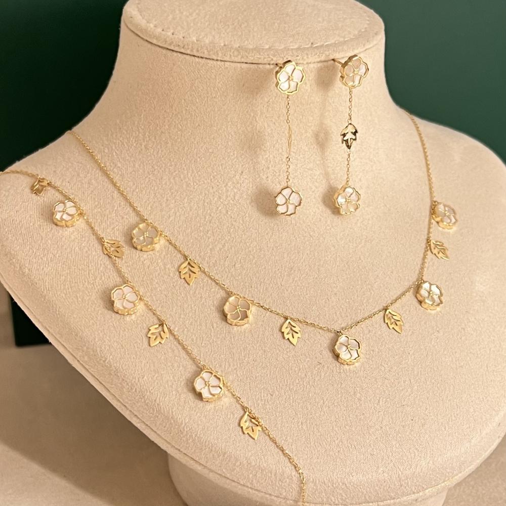 طقم ذهب مرصع بالصدف بدون خاتم عيار18-5150