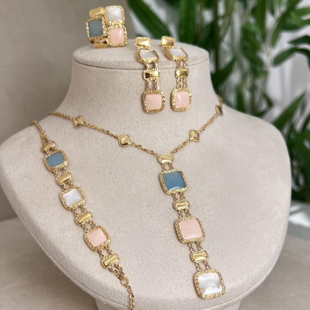 طقم ذهب مرصع بحجر كريم عيار18–4757