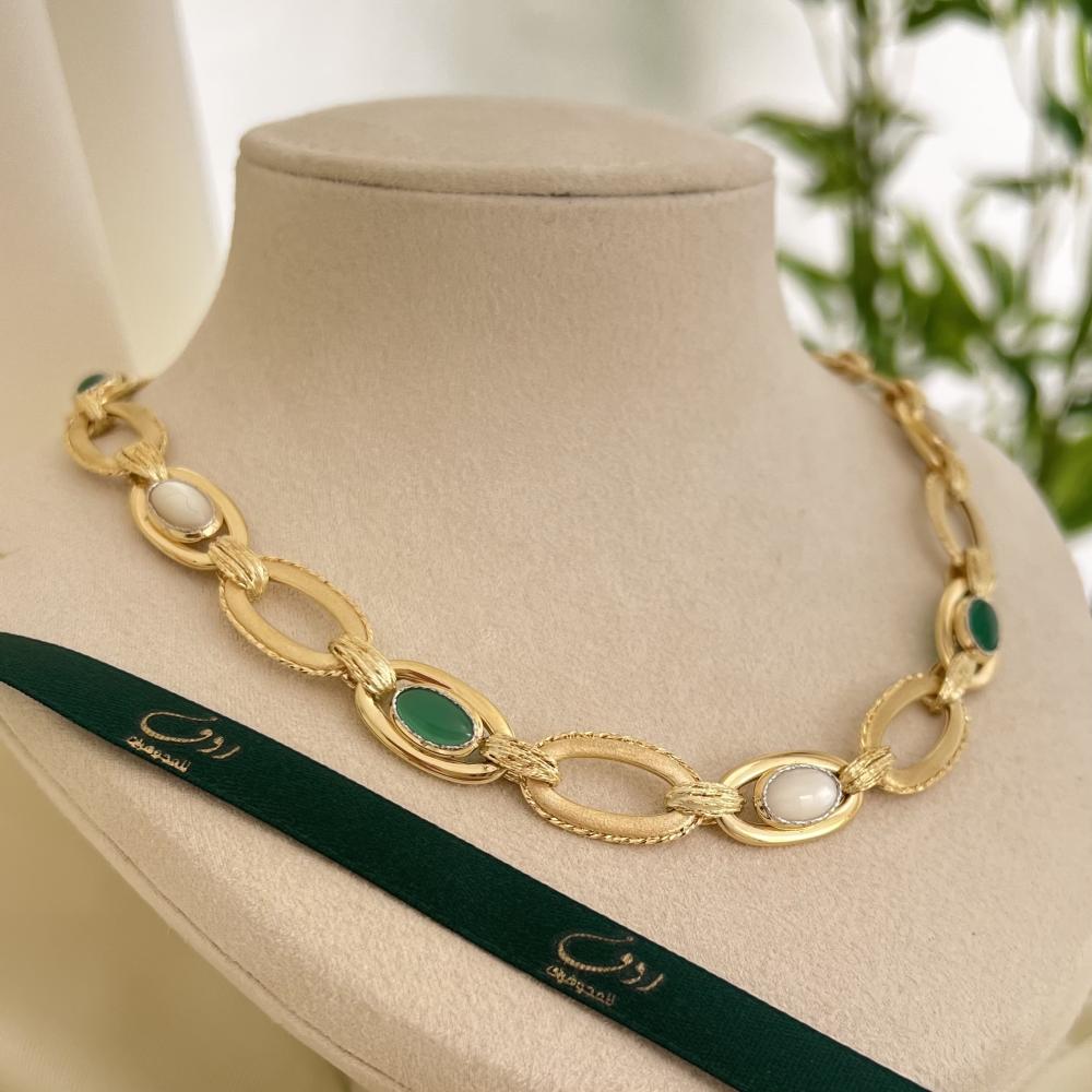 عقد ذهب بحجر كريم(green agathe ,white mother of pearl)(1.40 قرام)عيار18–3855