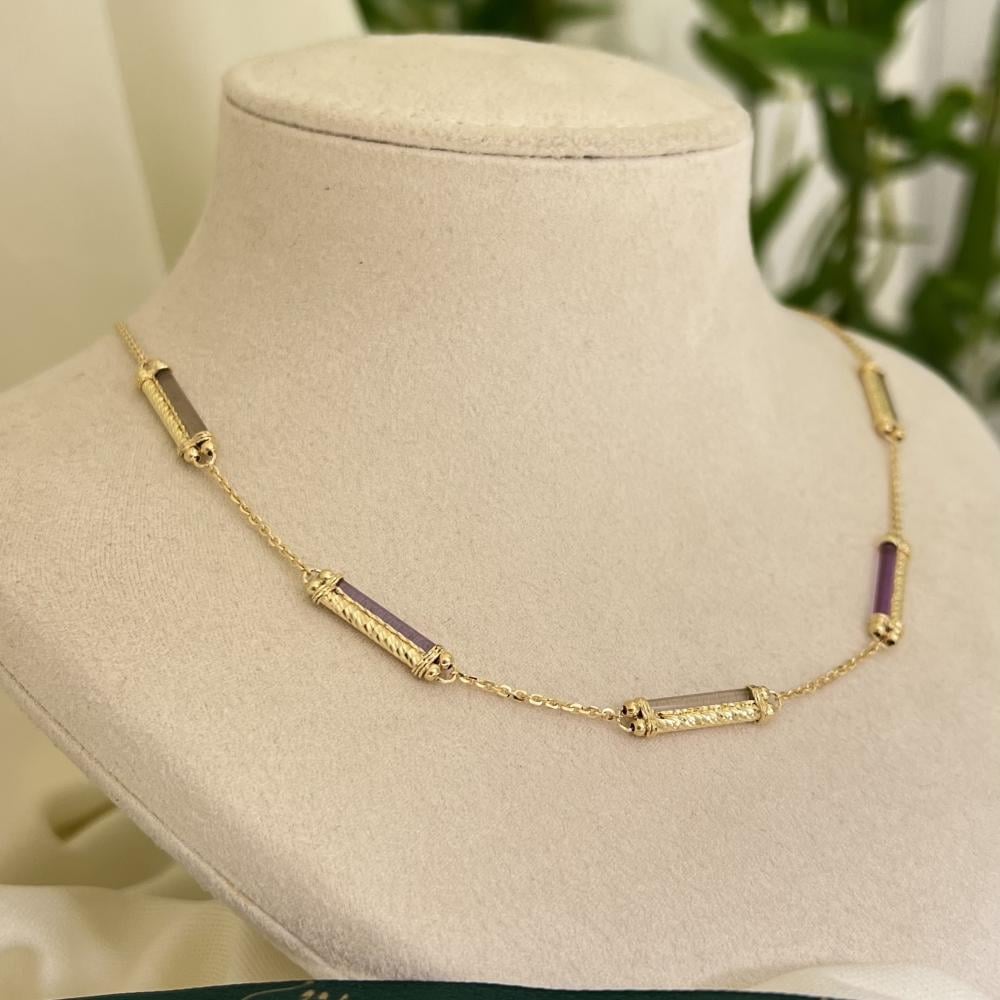 عقد ذهب بحجر كريم(,SmokyAmethyst )(0.50 قرام)عيار18–4445