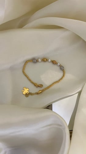 تعليقة ذهب بأحجار ملونه وحبه لولو عيار 18 —3401