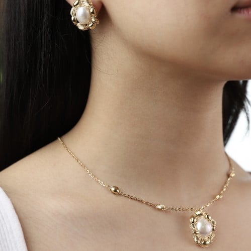 عقد وحلق ذهب لولو(Fresh water pearl) (6.50قرام)عيار18–4202