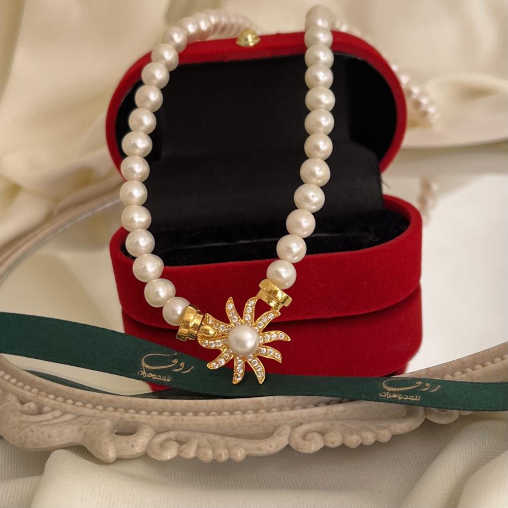 عقد ذهب مع لولو زراعي مضمون ومخصوم من وزن الذهب(22.32قرام)عيار21-3943
