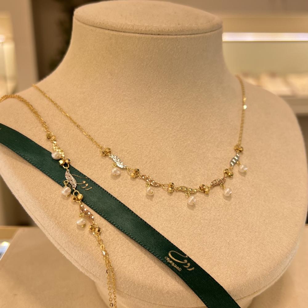 مجموعة شمسه عقد 85 سم وجهين ذهب عيار18–2585