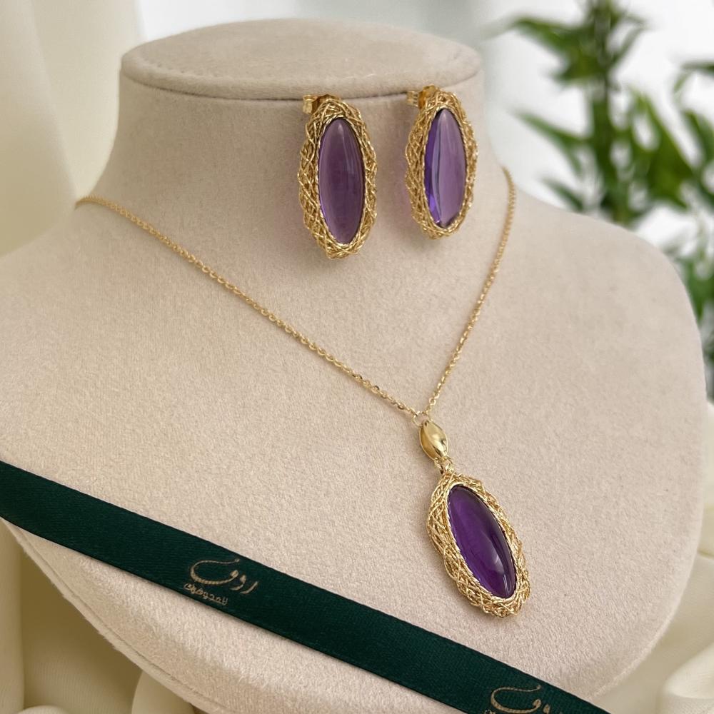 عقد وحلق ذهب بحجر كريم(amethyst)(3.60قرام)عيار18–3877