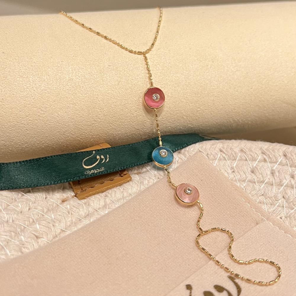 عقد وحلق وإسوارة ذهب بحجر كريم(Fluorite)(2.4 قرام)عيار18–4432
