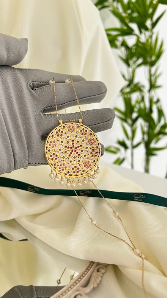 مجموعة شمسه عقد 85 سم وجهين ذهب عيار18–2585