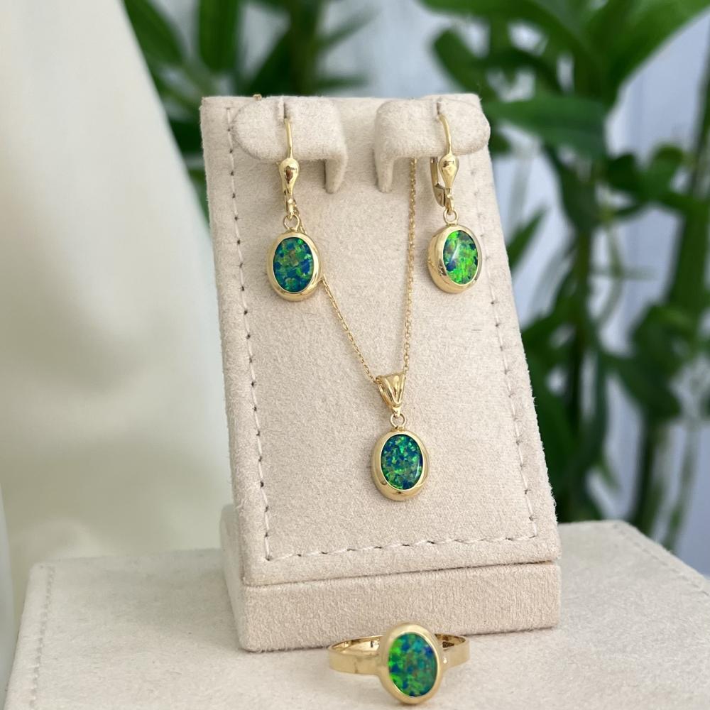 نص طقم ذهب بحجر الأوبال عيار18–4457